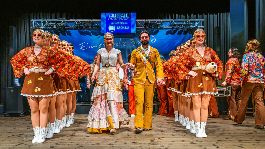 Den musikalischen Puls lieferte die JamesBand: druckvoll, tanzbar und mit dem Gespür dafür, Übergänge nicht abreißen zu lassen. Im Zentrum standen die Gastgeber, die Faschingsgesellschaft Aschau, mit ihrem Prinzenpaar: Prinzessin Stefanie I., „strahlende Hoheit der willkommenen Herzen im Zauber des Klangs“, und Prinz Leonhard I., „edler Wächter der Holzkunst und lodernden Flammen“. Mit Präsenz, Humor und viel Bühnenfreude führten sie durch die „New-York-Nacht“ in der Festhalle und zeigten: Hier wird nicht nur organisiert – hier wird gelebt. Zwischen den Showblöcken blieb die Tanzfläche durchgehend offen; so wurde aus dem Programm kein Pflichtteil, sondern der Soundtrack einer langen Nacht.