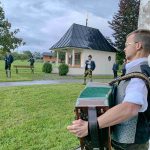 Pfarrer Josef Steindlmüller freute sich, dass der Gottesdienst trotz Regen und Corona möglich war und er sagte zu Beginn: „Gerne denke ich an meine Primiz in St. Salvator zurück, da hatten wir auch viel Regen. Betrachten wir das Wasser als Quelle auch für unser Innen-Leben. Gerade in Zeiten mit Corona merken wir, was uns fehlt und da wird uns deutlich, dass Traditionen wichtig sind“. In seiner Predigt sprach Pfarrer Steindlmüller die Bibel an, dazu erklärte er: „Das Wort Gottes darf nicht zur Routine verkommen, wir müssen es mit Herzen hören, uns von ihm berühren lassen und danach handeln gemäß dem Satz Jesu `Hört und Ihr werdet leben`´. Abschließend bedankte sich der Pfarrer nicht nur bei den Goaßlschnalzern, sondern auch bei der Mesnerfamilie Wimmer, beim Altardienst sowie bei den Saiten-Musikantinnen Brigitte Obermaier (Hackbrett), Claudia Feichtner (Zither) und Veronika Fischer (Gitarre) für deren feine volksmusikalische Gestaltung. Wie es der Brauch war und ist, lud Hansi Wallner von den Priener Goaßlschnalzern alle anwesenden Schnalzer aus Prien und aus Greimharting zu einem Gemeinschafts-Schnalzen vor Kirche und Leichenhaus von St. Salvator ein.