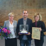 Foto 1: Freude über die Auszeichnung – von links: die Geschäftsführerin der Privaten Schulen Oberaudorf-Inntal Bettina Brühl, Konduktor Bela Mechtl und MdB Daniela Ludwig.