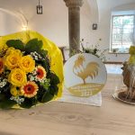 Diese herausragende Ehrung gab Anlass, dass Aschaus Erster Bürgermeister Simon Frank (links) zusammen mit Tourismuschef Herbert Reiter (links) offiziell gratulierte. Mit einem handgeschöpften „Gold-Schokoladen-Gockel“ und einem Blumen-Gruß wurden Ina und Martin Thaurer zu den höchsten Auszeichnungen und dem exklusiven Urlaubsangebot beglückwünscht. Insgesamt gibt es in Bayern über 4000 Betriebe „Urlaub auf dem Bauernhof“ und davon haben nur 20 diese besondere Auszeichnung „Goldener Gockel 2022“ erhalten. „Wir freuen uns so einen qualitätsvollen und besonderen Betrieb im Unterkunftsangebot von Aschau i.Chiemgau zu haben“, freut sich Herbert Reiter von der Aschauer Tourist Info.