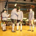 „Hans Pichler gehört dem Rimstinger Verein seit 51 Jahren an, über 16 Jahre war er Zweiter Vorstand und 20 Jahre war er Erster Vorstand und vorher war er auch noch Vorplattler bei den Aktiven. In dieser Zeit hat er Vieles bewegt, unter anderem 2003 als Festleiter beim 80jährigen Gründungsfest in der Reithalle und zehn Jahre später beim 90. Vereinsjubiläum ebenfalls als Festleiter“ – so Gebietsvertreter Hans März bei seiner Laudatio und er fügte noch hinzu: „Sein unermüdlicher Einsatz kam dem Verein auch zugute beim Bau des Vereinsstadels unter seiner Regie, bei der Entwicklung eines mobilen Bühnenwagens, bei der Durchführung von Seefesten sowie bei der Pflege der Partnerschaft mit dem Trachtenverein aus Sukoró in Ungarn“. Zum 100jährigen Jubiläum hat Hans Pichler mit seiner Familie einen Stadel für die Feldmesse an der Ludwigshöhe zur Verfügung gestellt. Die Auszeichnung war verbunden mit der Übergabe einer Urkunde und mit dem Anstecken des Goldenen Ehrenzeichens vom Gauverband I.