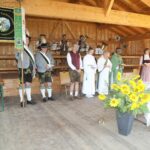 Der Tag des offenen Denkmals begann im Trachtenkulturzentrum mit einem Gottesdienst auf dem Zeltplatz. Ortspfarrer Pater Benjamin zelebrierte zusammen mit Pfarrer Prechtl und die Holzhauser Bläser unter der Leitung von Christine Wallner sorgten für den musikalischen Rahmen. Bernhard Wappmannsberger, Christoph Deuringer und Wolfgang Stolpe kamen extra aus München, um mit der Standarte des Bayerischen Trachtenverbandes die Ehre zu erweisen. Die Bayernhymne beendete die Gottesdienstfeier.