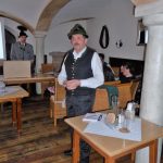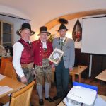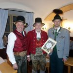Foto/s: Hötzelsperger- von links: Michael Sattlberger senior (li.) und Vorstand Peter Sattlberger junior (re.) bedankten sich bei Hans Sattlberger für 30 Jahre als Leiter der Historischen Samergruppe mit einer Urkunde.