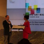 Von dem Kunst- und Kulturprojekt des IDC, dem „Delphic Art Wall“ berichtete Daniel Schmöcker, der zugehörige Projektkoordinator. „Delphic Art Wall“ ist praktisch eine Wand, die Europa in seiner Vielfalt vereint. Dabei brachten Schüler/innen ihre Vorstellungen, Wünsche und Träume von einem gemeinsamen Europa während der ITB auf einer Wand. In diesem Jahr zu dem Thema „Europawahl“, wobei Werte, auf die die Europäische Union aufbaut, wie Meinungsfreit, Reisefreiheit, Demokratie, bildlich dargestellt, die Wand sozusagen „zum Sprechen“ brachten, so Herr Schmöcker. Schirmherr dieses Kunstprojekts ist Dr. Klaus Lederer, Berliner Bürgermeister und Senators für Kultur. Herr Schmöcker ging zum Thema „Gleichberechtigung, gegen Rassismus“ auch auf eine historische Gegebenheit ein, wonach der Vater von Martin Luther King 1934 zum 5. Baptistische Weltkongress, der in den Ausstellungshallen der heutigen Messe Berlin stattfand, nach Berlin kam. Dazu präsentierte Herr Schmöcker eine Erinnerungstafel, zum Gedenken an diese Verbindung von Martin Luther King mit Berlin.