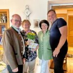 Foto: Gratulation für Hanni Jell – von links: Zweiter Bürgermeister Michael Anner junior, Hanni Jell, Rosi Hell und Pfarrvikar Gottfried Grengel