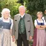 Text und Bilder: Thomas Schwitteck – Das Foto zeigt Dirigenten Bernd Eutermoser beim Gratulieren, den Jubilar mit Ehefrau Gertraud und Familie, Georg Spatzier bei der Geschenkübergabe, mit herzlichen Worten des Dankes für die langjährige Treue zur Musik.