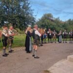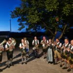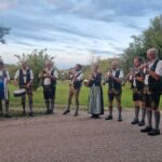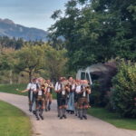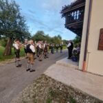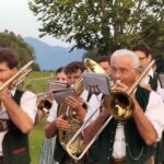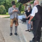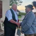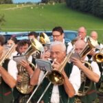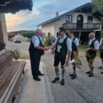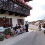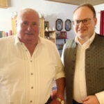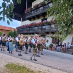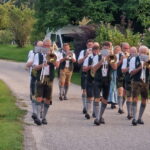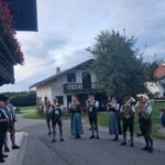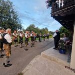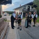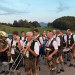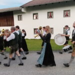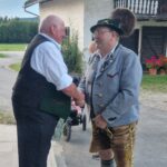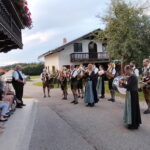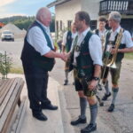 Besonders guten Grund zum Gratulieren und Danken hatte der Trachtenverein „Daxenwinkler“ Atzing, diesem gehörte der Jubilar seit der Gründung einer Kindergruppe im Jahr 1956 an. Neun Jahre war Paul Schlosser Erster Vorplattler und 14 Jahre bis 1984 führte er den Verein als Erster Vorstand, zudem war er beim Gautrachtenfest 1987 Festleiter. Daran erinnerten bei der Übergabe eines Geschenkkorbes die nunmehrigen Atzinger Trachtenvorstände Michael Schlosser und Konrad Huber. Seit vielen Jahren gehört Paul Schlosser auch dem Trachtenverein „Die lustigen Wildenwarter“ an. Bei diesem ist es guter und schöner Brauch, dass bei einem 80. Geburtstag mit einem Ständchen der Wildenwarter Blaskapelle gratuliert wird. Und so marschierte Trachtenvorstand Peter Voggenauer mit einer starken Besetzung der Blaskapelle vom Stettener Ortseingang zum Huberhof. Natürlich gab es dort für die Musikanten eine Brotzeit, ehe sich diese zu ihrer wöchentlichen Probe ins Musikantenheim begaben.