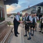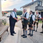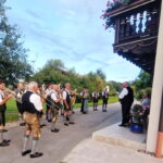 Fotos: Blaskapelle/GTEV Wildenwart – 2.Wildenwarter Blasmusikanten und Wildenwarts Trachtenvorstand Peter Voggenauer gratulierten mit einem Ständchen vor dem Huberhof .