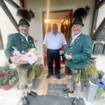Fotos: Hötzelsperger – 1. Die Trachtenvorstände Michael Schlosser (li.) und Konrad Huber (re.) gratulierten Ehrenmitglied Paul Schlosser zum 80. Geburtstag.