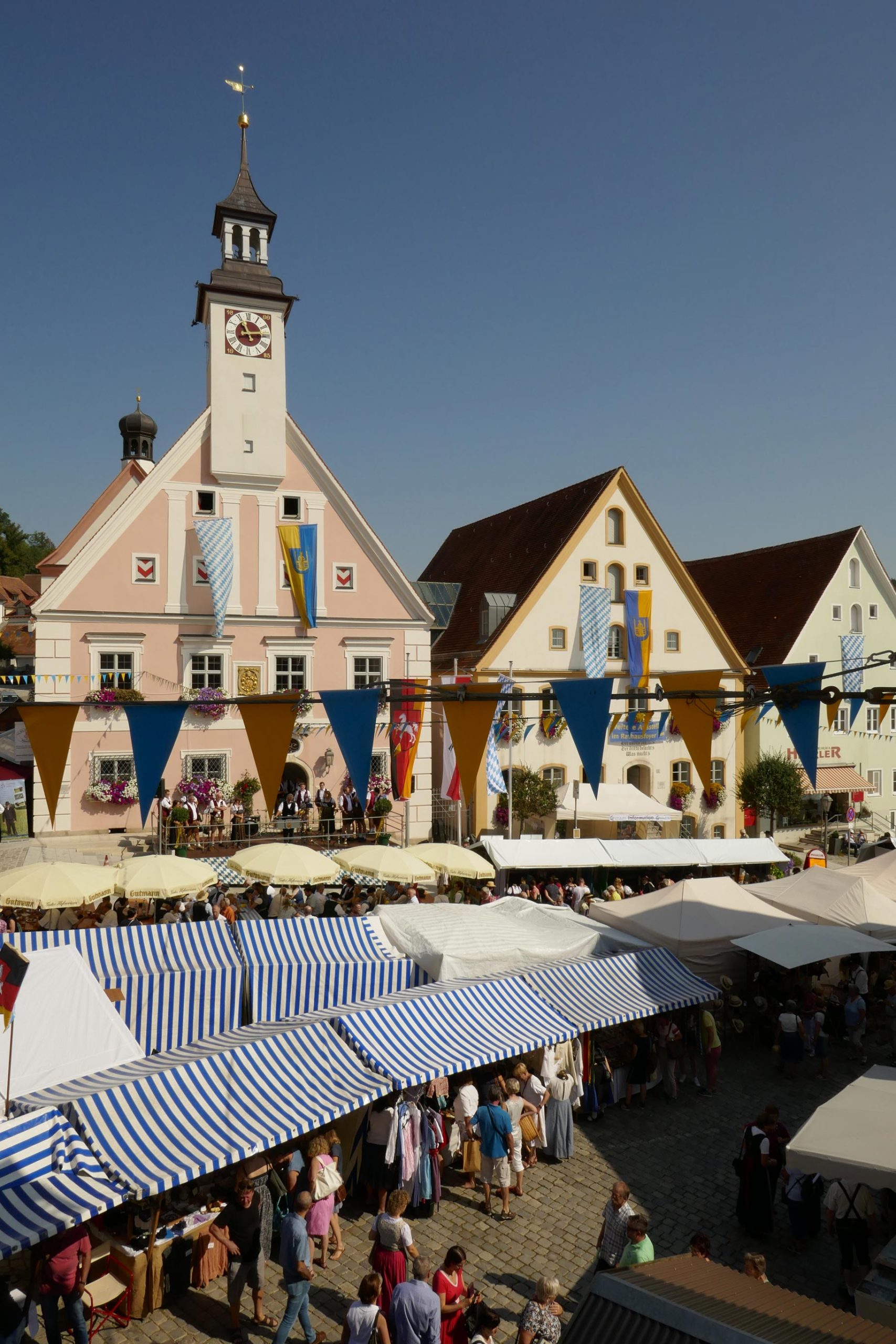 Im Jahr 2019 fand der Gredinger Trachtenmarkt bei bestem Wetter statt und lockte Tausende Besucher an. In diesem Jahr hoffen Veranstalter und Kaufleute auf ein großes virtuelles Publikum. Bildautorin: Petra Wilhelm