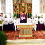 Fotos: Hötzelsperger – Eindrücke vom Abschiedsgottesdienst mit Pfarrer Gottfried Grengel in Greimharting – u.a. v.l.n.r.: Konrad Möderl und Elisabeth Kotter vom Pfarrgemeinderat mit Ministranten und Pfarrer Gottfried Grengel.