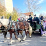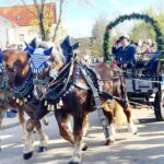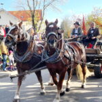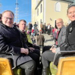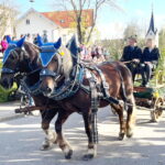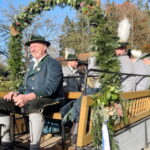 Fotos: Hötzelsperger – Eindrücke vom Leonhardiritt in Greimharting – u.a.: von links bei der Bürgermeisterkutsche Andreas Friedrich aus Prien, Andreas Fenzl aus Rimsting, stehend 3. Bürgermeister Robert Perl aus Rimsting, 2. Bürgermeister Thomas Schuster aus Rimsting und Bernaus Bürgermeisterin Irene Biebl-Daiber.