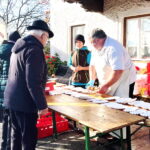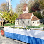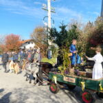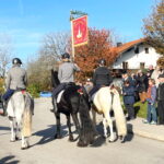 Pfarrer Gottfried Grengel erinnerte in seiner Predigt an den Heiligen Leonhard, der als Schutzpatron der Gefangenen immer in Ketten dargestellt wurde. Diese Ketten wurden später als Viehketten gedeutet und so wurde St. Leonhard auch der Heilige für Pferde und Rinder. Der Geistliche nahm am Kirchenhügel in Anwesenheit des Liturgischen Dienstes die Segnung von allen aktiv am Umritt beteiligten Personen und Tieren vor. 70 Pferde und 15 Motivwägen sorgten für die vielen Zuschauer für ein besonders schönes Prozessionsbild – zumal im etwas höher gelegenen Dorf Greimharting an diesem Tag die Sonne schon am frühen vormittag zum Vorschein kam. Kirchen und Kapellen sowie Heilige und landwirtschaftliche Symbole prägten die Festwägen. Allen voran waren Vorreiter mit Standarte und die Festkutsche von Sebastian Mayer vom Fürstnerhof mit den Bürgermeistern Andreas Fenzl und Thomas Schuster aus Rimsting, Irene Biebl-Daiber aus Bernau und Andreas Friedrich aus Prien. Gleich hintnach folgte Hans Riepertinger vom Langhof mit der auf engstem Raum aufspielenden Priener Blaskapelle. Mehr Platz hatten die Blasmusikanten dann bei der anschließenden Zusammenkunft im Gemeindehaus. Dort fanden sich auf Einladung der Gemeinde Rimsting alle Aktiven und Gäste zu einer gemütlichen Brotzeit ein. Für das leibliche Wohlbefinden außerhalb des Gemeindehauses sorgten bereits vorher Metzger Richard Grosse mit einem Wurststand sowie die Greimhartinger Frauen mit Kaffee und Kuchen. Der Leonharditag ist auch ein besonderer Tag für die Greimhartinger Kindergartenkinder, wenn sie mit einem eigenen Wagen am Umritt teilhaben dürfen.