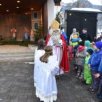 Alle Kinder fieberten einem besonderen Ereignis entgegen, sie warteten auf den Einzug des Heiligen Nikolaus. Standesgemäß kam er mit einer Kutsche, die von den beiden beeindruckenden Noikern Hias und Traudi gezogen wurden. Mitten auf dem Markt vor dem beleuchteten Christbaum stoppte Sabine Lehrberger die Kutsche und der Heilige Nikolaus konnte mit seinen beiden Engeln aussteigen. Dicht gedrängt standen die Kinder, um Eines der kleinen Geschenke vom Nikolaus zu bekommen.