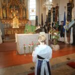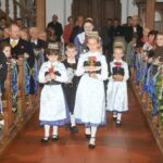 In einem gemeinsamen Kirchenzug ging es in die Vilsheimer Pfarrkirche Sankt Kastulus, wo der priesterliche Leiter Pater Dan Anzorge die würdige Festgottesdienstfeier zelebrierte. Die Chorgemeinschaft Gundihausen-Vilsheim zusammen mit den Florikanten-Blechbläsersolisten, unter der Gesamtleitung von Ritas Obermeier, brachten die “Alpenländische Messe” von Lorenz Meyerhofer zu Gehör. Der Geistliche sagte in seiner Ansprache: “Tracht steht für Heimatliebe und Lebensfreude, um damit Tradition und Kultur zu bewahren, Werte und Heimat zu pflegen – dafür setzen sich die Trachtenvereine ein, dies hat der Trachtenverein Vilsheim auch in den zurückliegenden siebeneinhalb Jahrzehnten immer wieder eindrucksvoll bewiesen.”
