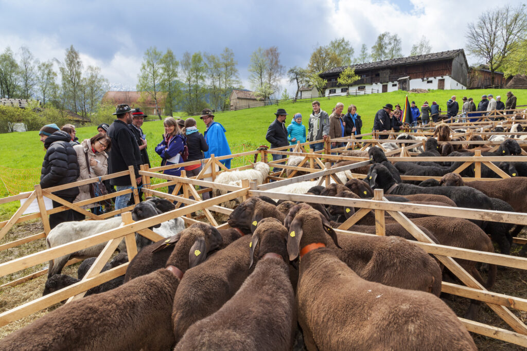 Großweil, 17. April 2023 – Weit über 100 Schafe von rund 25 Züchtern erwarten die ARGE Farbiges Bergschaf zusammen mit dem Freilichtmuseum Glentleiten am kommenden Sonntag (23.4.) auf dem Museumsgelände. Denn es ist wieder Schaftag in der Kulturinstitution des Bezirks Oberbayern. Es werden Schwarze, Braune und Gescheckte Bergschafe sowie Alpine und Krainer Steinschafe prämiert, dazu gibt es ein buntes Rahmenprogramm rund um die beliebten, aber seltenen Tiere.