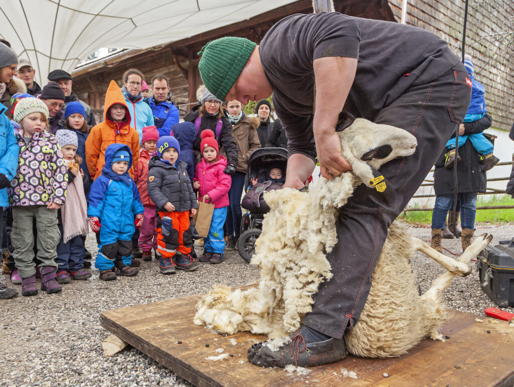 Zum Beispiel sind passende Vorführungen Teil des Programms: Die Spinngilde verdrillt Wolle zu Fäden, eine Filzerin zeigt ihr Handwerk und die Besuchenden können eine Schafschur miterleben. Außerdem werden Schafprodukte zum Kauf angeboten. Die Museumsgastronomie richtet ihr Angebot ebenfalls nach dem Tag aus – es gibt unter anderem Schafbratwürste und Lammleberkäs.