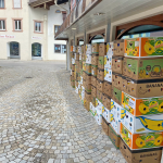 Nach vorerst zögerlichen Rückmeldungen auf seinen Kleider-Spenden-Aufruf kam es inzwischen zu großherzigen Spenden. Als erster Spender meldete sich Mode Wembacher aus Waging. Ganze 100 Bananenkartons mit insgesamt 2.466 Artikeln konnte Hans Alt abholen, dazu sagte er erfreut: „Das waren allesamt neue Waren aus dem Wintersortiment, da werden Kinder und Erwachsene staunen, das wird für sie wie Weihnachten werden, wenn in Bälde   der LKW ankommen wird“.