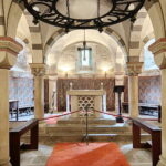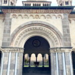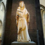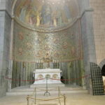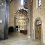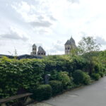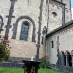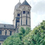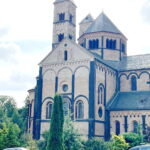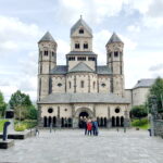 Die sechstürmige Klosterkirche, das Laacher Münster, gilt als eines der schönsten Denkmäler der romanischen Baukunst aus der Salierzeit in Deutschland. Das hier als „Paradies“ bezeichnete prächtige Atrium (im Kirchenbau für Vorhof) der gewölbten Pfeilerbasilika ist das letzte erhaltene nördlich der Alpen.[3][4] Der Kreuzgang aus dem Anfang des 13. Jahrhunderts wurde 1859 restauriert. 1926 verlieh Papst Pius XI. der Kirche den Ehrentitel einer „Basilica minor“.