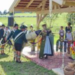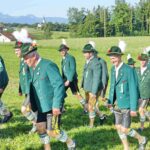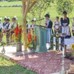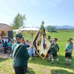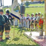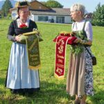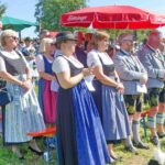Zum Willkommen der Trachtler mit Altar- und Bergblick wies Pfarrer Kebinger auf den Geschichtsreichtum des Trachtenvereins hin, dessen einhundertjähriges Bestehen echter Anlass zu Dankbarkeit ist. Tobias Gaiser stellte die Jesus-Worte „Folget mir nach“ an den Anfang seiner Predigt und antwortete selbst mit Blick auf die neu geweihte Fahne mit der Aufschrift „Das Brauchtum schützend in die Zukunft tragen“ mit den Worten: „Das vom Obst- und Gartenbauverein schön gebundene Kreuz und die Fahne mögen den Weg von der Vergangenheit in die Zukunft weisen, bleiben wir traditionsverwurzelt und zukunftsoffen und leben und pflegen wir die christlichen Werte wirklich“. Erster Gauvorstand Michael Hauser (ebenso Ehrengast wie weitere Mitglieder der Vorstandschaft vom Gauverband I und wie stellvertretende Landrätin Marianne Loferer) bezeichnete im Beisein der Gaustandarte die neue Fahne als Zeichen der Kraft für eine neue Zeit und er ergänzte: „Veränderungen brauchen Standfestigkeit, das gilt für 100 Jahre Trachtenverein Hirnsberg-Pietzing ebenso wie für 140 Jahre Trachtenbewegung in Bayern. Gott mit Dir Du Land der Bayern“. Die Feier am Freialtar, der von Konrad Stein und seinen Helfern hergerichtet wurde, wurde mit der Bayernhymne beendet. Trachtenvorständin Katharina Stein war es ein großes Bedürfnis, ein vielfaches „Vergelt´s Gott“ zu sagen, denn Zusammenhelfen und Zusammenhalten wurden nicht nur an diesem Festtag groß geschrieben.