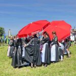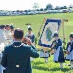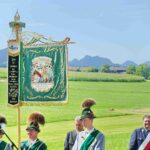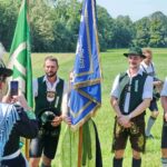 Höhepunkt des Jubiläums „100 Jahre Trachtenverein Bachecker Hirnsberg-Pietzing“ waren ein Sonntags-Gottesdienst auf freiem Felde, die dabei integrierte Weihe einer neuen Fahne sowie ein Festzug zur gemeinsamen Einkehr im Festzelt bei Moosen. Die Gottesdienst-Gestaltung übernahmen Pfarrer Claus Kebinger, Gemeindereferent Tobias Gaiser, das Gottesdienstteam vom Trachtenverein, die Bachecker Blech und der Jugendchor Hirnsberg unter der Leitung von Regina Gottschal. Die Gebete galten dabei auch Festleiter Richard Mühlbauer, der wenige Stunden zuvor ins Krankenhaus eingeliefert werden musste und sich aber wieder auf dem Weg der Besserung befand.