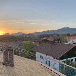 Wenn einem auf das Dach gestiegen wird, verheißt dies im Volksmund nicht immer Gutes – wenn aber das Herbstwetter mitspielt, so können die Leute und Handwerker, die auf den Dächern ihre Baustelle haben, nicht nur froh über die guten Arbeitsbedingungen sein, sondern sie können sich zuweilen auch über schöne Aussichten erfreuen. Diese aktuellen Bilder mit Blich auf die aufgehende Sonne und zur Kampenwand entstanden im Westen der Gemeinde Prien.