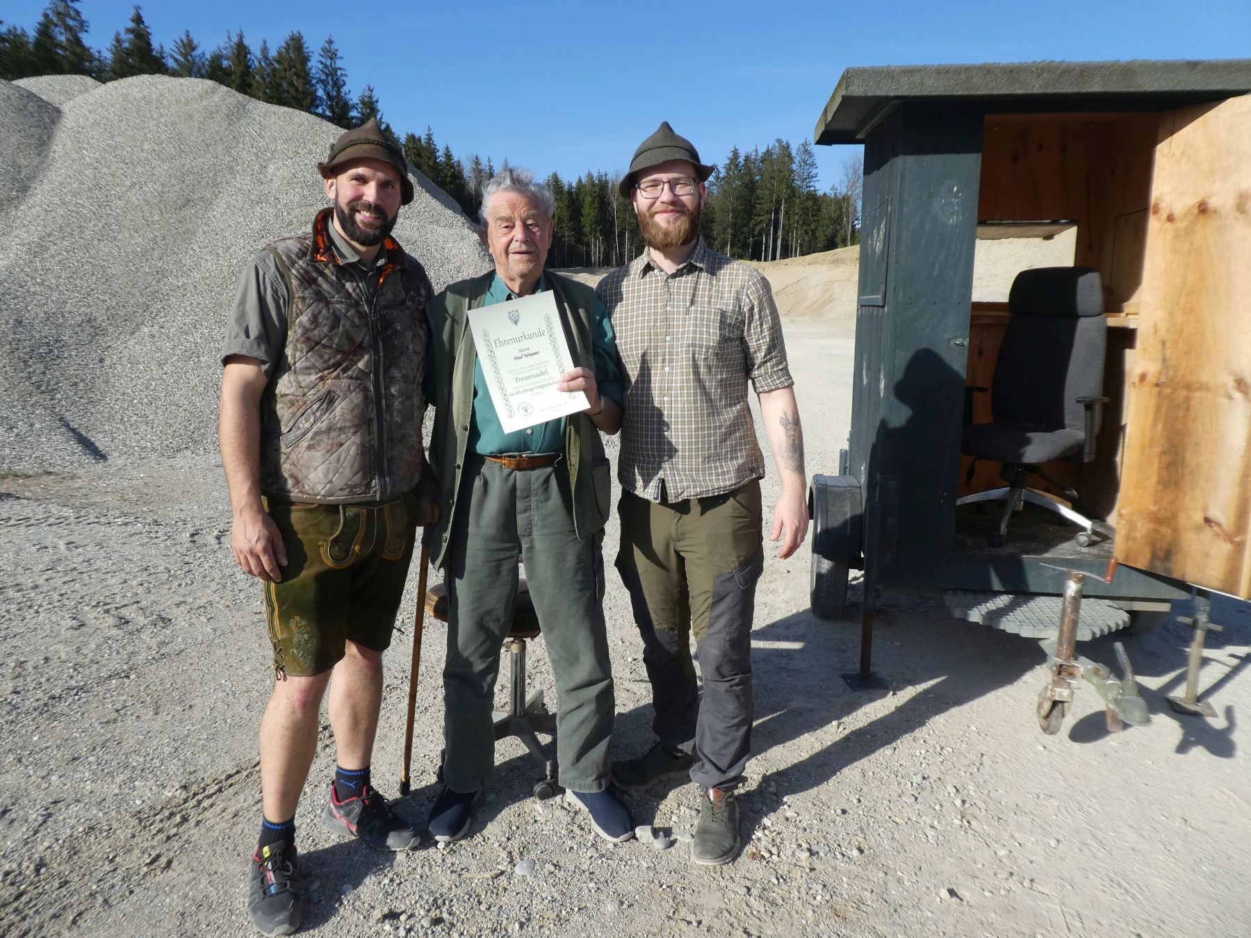 Die Ehrung für Paul Wimmer übergaben die Hegeringleiter Lukas und Valentin Pilger beim Einschießen – hier gab Paul Wimmer einen sauberen 10er ab!