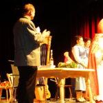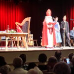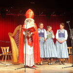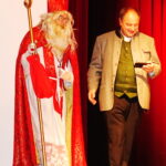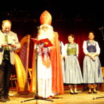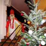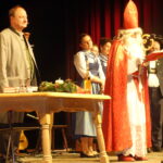 Hans-Dieter Dummert war es auch, der mit Pfarrer Schießler den bereits früher bestandenen Kontakt wieder aufnahm, als er von dessen Besuch in Prien hörte. „Da kam mir die Idee, dass es gerade am Nikolaus-Vorabend passend wäre, den Nikolaus sprechen zu lassen“ – so Dummert, der bereits seit 53 Jahren in Prien das Ehrenamt des Bischofs Nikolaus ausübt und er ergänzte: „In all meinen Jahren besuchte ich ca. 2.900 Familien vor allem in Prien, Rimsting, Bernau und Bad Endorf. Aber nicht nur Familien, viele Vereine, 37 Jahre den Katholischen Kindergarten St. Irmengard, Gottesdienste oder das Altenheim“. Aus seinen Erfahrungen erzählte der Nikolaus einige lustige Anekdoten sehr zur Erheiterung des Publikums. Spontan beteiligte sich Pfarrer Schießler an der vergnüglichen Unterhaltung und sagte: „Ein Bildnis vergess ich nie: das zeigt wie ein Nikolaus am Boden liegt und der Bub danebenstehend mit der Rute sagt: ER hat angefangen!“. Eindringlich und in Versen warnte der Nikolaus, sich in einer schnell gewordenen Zeit nicht von Hetze, Konsumzwang und Leistungsdruck ablenken zu lassen, sondern vielmehr für Fürsorge und Frieden im eigenen Lebensbereich zu sorgen.