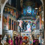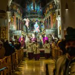 Kardinal Marx feiert Messe zur Aufstellung von barocker Passionsdarstellung und moderner Lichtkunst.