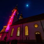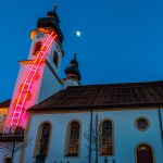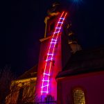 Kunstinstallation „Himmelsleiter“ am Nordturm der Aschauer Kirche vom Künstler Erwin Wiegerling