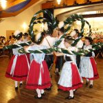Weiter ging es in bunter Reihenfolge mit Schuhplattlern und Trachtentänzen der drei freundschaftlich verbundenen Vereine. Die Gastgeber boten unter anderem den Sterntanz, den „Reit im Winkler“ mit Plattln und Dirndldrahn und den Winklmooser Plattler, die Inzeller den Steierer und den Plattler „Wien bleibt Wien“ und die Ruhpoldinger den Kronentanz und einen Plattler mit Dirndldrahn. Dazu hatten die Gäste jeweils ihre Goaßlschnalzer mitgebracht, die schlagkräftig und exakt zu ihrer Musik agierten.