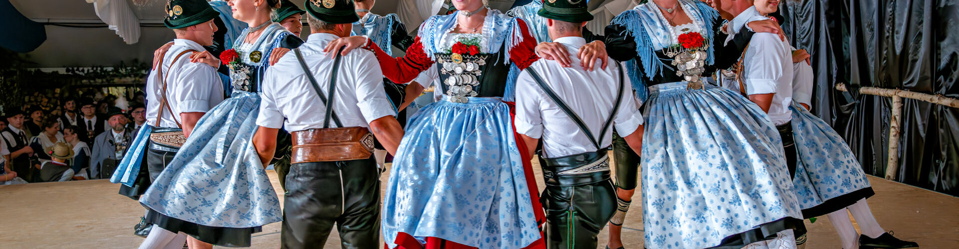In diesem Sinne galt sein besonderer Willkommensgruß den Traditionsverbänden wie dem Bayernbund und den Bayerischen Gebirgsschützen, desweiteren den Abordnungen des Gauverbandes I, des Chiemgau-Alpenverbandes und des Rhein-Main-Gauverbandes120 aktive Dirndl und Buam aus einem Verein mit 580 Mitgliedern