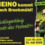 Save the date! Am 12. Juli gibt sich Hei­no in Bruckmühl die Ehre. Der 87-Jäh­rige begeistert aktuell auf Mallorca im Bierkönig genauso wie auf den verschie­densten Bühnen mit seinem breitgefä­cherten Repertoire. Heinos musikali­scher Weg begann vor über 60 Jahren mit einem Akkordeon und einem gro­ßen Traum. Vieles hat sich seitdem ver­ändert, aber eines ist bei Heino unverändert: „Die Freude am Singen und der Dank dafür, dass Ihr mir so lange treu geblieben seid“, so der Sänger.