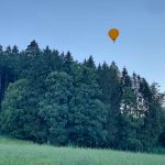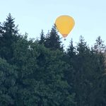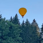 Plötzlich tauchte ein knallgelber Heißluftballon über den Dächern von Prien-Prutdorf auf – und kurze Zeit später verschwand er hinter hohen Waldbäumen. Ob das Gas vor einer Wipfel-Kollission den Ballon wieder in die Höhe trieb oder ob dahinter eine grüne Wiese zum Empfang bereit stand ist nur zu hoffen…