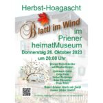 Die Priener Verserlschreiber veranstalten am kommenden Donnerstag, 26. Oktober 2023, wieder einen Hoagascht-Abend im Priener heimatMuseum mit Lesungen eigener Gedichte und Geschichten.