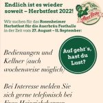 Am Samstag, 27. August startet das Rosenheimer Herbstfest. Für die Auerbräu-Halle mit dem neuen Bewirtungs-Team der Familie Heinrichsberger werden -auch wochenweise- noch Bedienungen und Kellner gesucht. Wer sich für dieses Arbeits- und Gastronomie-Erlebnis interessiert, kann sich an Frau Heinrichsberger, Telefon 0151-11699815 wenden.
