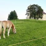 Die Wiesen um die 1934 von Kardinal Faulhaber eingeweihte und auf einem Hügel vom damaligen Wildenwarter Kirchenbauverein errichtete Pfarrkirche “Christkönig” sind ein paradiesisches Weidegebiet für die Pferde aus Prutdorf.
