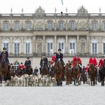 Die letzten Schleppen auf der Schlossallee enden mit dem “Halali” gegen 15 Uhr am Neuen Schloss. Dabei ehrt die Jagdherrschaft Esther Höhn und Josef Ettenhuber  die Reiter mit dem Eichenbruch und einer Erinnerungschleife, der Master und Präsident gratuliert mit dem Jagdknopf und die Foxhounds erhalten zur Belohnung Rinderpansen. Wenn Pferde und Hunde versorgt sind, lädt die Jagdherrschaft zum Jagdessen in die Schlossgaststätte des Alten Schlosses. Danach geht es für die Pferdegespanne und  Reiter mit der Fähre und für Jagdgäste mit den Personenschiffen wieder zurück ans Festland.