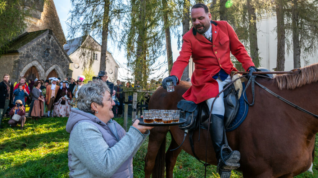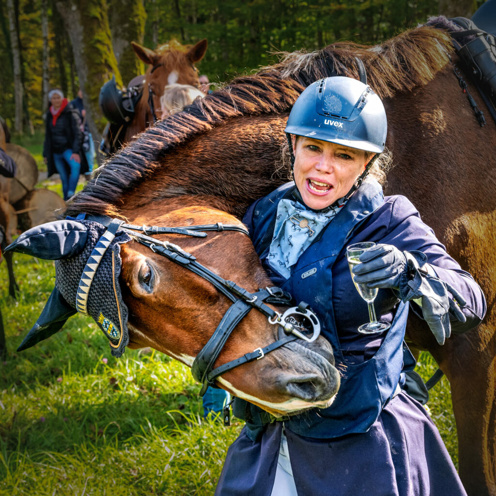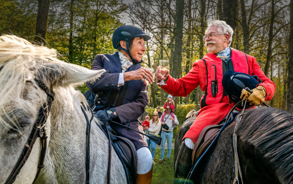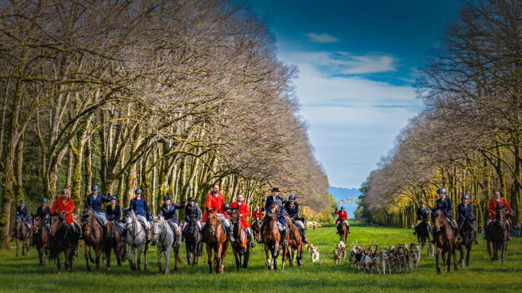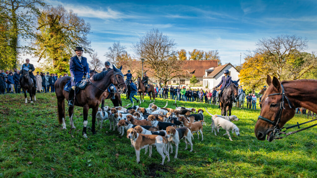 Verschwitzte, glückliche Gesichter lachen, während Geschichten über große Sprünge und mutige Pferde erzählt werden. Hände tätscheln die feuchten Pferdehälse. Der Höhepunkt des Tages ist das „Curée“, die Belohnung für die Hunde: Die Meute stürzt sich auf einen Berg aus duftendem Pansen – ein wahrer Leckerbissen für die Tiere. Es ist die Anlehnung an das historische Füttern der Wildinnereien des gejagten Wildes bei den traditionellen Reitjagden von früher.