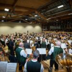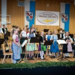Den zweiten Teil des Konzertabends eröffnete die 50-köpfige, kraftvolle Blaskapelle unter der Leitung von Thomas Lindlacher mit dem „Astronautenmarsch“, welcher von Josef Ullrich komponiert wurde. Die Musikanten sicherten sich vom ersten Ton an die volle Aufmerksamkeit der vielen Konzertbesucher, die ein sehr diszipliniertes Blasorchester erlebten. Mit der Polka „Prager Gassen“ von Jaroslav Zeman erklangen im Anschluss flotte böhmische Melodien in der Überseer Turnhalle. Mit einer beeindruckenden und konzentrierten Leistung präsentierte die Blaskapelle die anspruchsvolle Melodienfolge aus dem Musical „Der Zauberer von Oz“ von Harold Arlen, wofür sie viel Beifall erhielten. Ebenfalls für Begeisterung sorgten der schwungvolle Marsch „Kaiserin Sissi“ von Timo Dellweg und der bekannte „Seufzer-Galopp“ von Johann Strauß Vater, bei dem die Musikanten das schnelle Galopp-Tempo übernahmen, sodass sie zum Ende des Stücks vor Anstrengung Seufzen mussten. Besonders gefühlvoll zeigte sich die Blaskapelle mit dem anmutigen „Schlittschuhläufer-Walzer“ (frz. Les Patineurs) von Emil Waldteufel. Zum Abschluss wurde schließlich das Medley „TV-Kultabend“ aufgelegt, dass das Publikum zum Erraten bekannter Titelmelodien, darunter z.B. “Lindenstraße”, „Schwarzwaldklinik“ und „Wetten, dass…?“, einlud. Natürlich durfte nach dem ausdauernden Applaus der Zuhörer die Zugabe nicht fehlen. Gespielt wurde der „Rainermarsch“, der als heimliche Landeshymne Salzburgs bekannt ist. Das Publikum konnte bei diesem Lied mitsingen. Auch einige Musikanten legten für zwei Strophen ihr Instrument beiseite und stimmten kräftig mit ein. Ein besonderes Highlight des Konzerts stellte die zweite Zugabe dar. Die rund 90 Musikanten aus der Jugendblaskapelle, des Erwachsenen-Ensembles und der Blaskapelle fanden sich gemeinsam auf der Bühne ein und spielten zum Abschluss den bekannten Schlagerhit „Sweet Caroline“ von Neil Diamond.