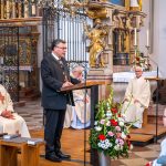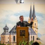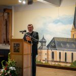 Als Gastredner zur anschließenden Kundgebung im Gasthaus Schmid war Dr. Florian Herrmann, der Staatsminister für Bundesangelegenheiten und Medien, eingeladen. Er ließ keinen Zweifel, dass er sich im kath. Männerverein sehr wohlfühle, wo doch seine Großmutter bereits Vorsitzende vom Kath. Frauenbund war, und der Großvater jahrelang Chorleiter war. So hat er auch sehr gerne während des Fest-Gottesdienstes die Lesung übernommen, was er bereits früher als Schulrektor oft übernahm. Außerdem habe er ja auch bis Ende seines Studiums in vielen Gemeinden Orgel gespielt. Allerdings habe er es nie hinter den Altar gebracht, obwohl dies seine Großeltern sehr gerne gesehen hätten. Doch da habe ihm die Berufung gefehlt. In seiner Rede thematisierte er die Bedeutung der liberalen, freien Gesellschaft u. a. angesichts des verheerenden Angriffskriegs von Russland in die Ukraine.