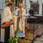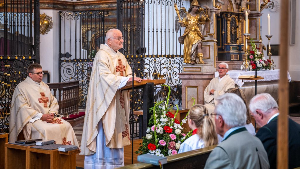 An diesem Sonntag lud der katholische Männerverein zu seiner traditionsreichen Herbstwallfahrt in die Basilika von Tuntenhausen. Zelebrant war Pater Dr. Ulrich Dobhan OCD. Er ist unbeschuhter Karmelit und war Prior im Karmelitenkloster Maria Magdalena in Würzburg. In seiner Predigt warf er die Frage auf, was im Leben der Menschen heute wirklich notwendig ist zum Leben, und wie viel Überflüssiges man glaubt zu brauchen. Ob es wirklich immer noch mehr, und mehr braucht, was man gerne besitzen möchte im Gegensatz zu dem, was wirklich nützlich ist, was vielleicht angenehm ist und was überflüssig ist. Viele Menschen würden im Überfluss leben. Doch alles, was überflüssig ist, fehlt dem Anderen, fehlt dem Nächsten. Dabei stellte er die Frage, ob wir so sehr an uns selbst denken und in unserer eigenen Welt eingeigelt sind, dass wir nicht mehr wahrnehmen, wo vielen Menschen heute das Lebensnotwendige fehlt. Vor allem, wenn man bedenke, welche Unmengen an Lebensmittel in Deutschland täglich vernichtet werden.