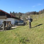 Nach einer kurzen Pause am idyllischen Bergsee geht es weiter. Wir kommen zu einer Wegkreuzung mit einem Wegweiser der nach rechts in Richtung Hinterwössen zeigt. Geradeaus führt der Weg zur Taubenseehütte. Natürlich machen wir den Abstecher zur Taubenseehütte, denn eine Einkehr in der wunderschön gelegenen Hütte ist ein absolutes Muss. Nach einer Brotzeit und dem Genuss der herrlichen Aussicht von der Terrasse der traumhaft gelegenen Hütte geht es zurück zur Wegkreuzung. Wir folgen dem steinigen Pfad hinunter zur Chiemhauseralm, die wunderschön liegt und Aussichten auf den Geigelstein, Breitenstein und Karkopf bietet. Die Alm ist nur im Sommer bewirtschaftet, also schauen wir uns nur kurz um, denn sie eröffnet tolle Blicke hinüber zum Geigelstein. Es geht gemütlich weiter über Moorwiesen zur Häusleralm. Kurz nach passieren der Häusleralm zweigt rechts ein Weg ab zur Baumgartenalm. Ein Abstecher dorthin ist unbedingt empfehlenswert, denn von hier hat man eine phantastische Aussicht in die Berchtesgadener Alpen. Nach diesem Abstecher wandern wir zurück auf den Weg hinunter über die Wegmannalm zum Ausgangspunkt am Wanderparkplatz in Hinterwössen. Insgesamt war es keine besonders schwierige, aber lange Bergwanderung durch insgesamt gutmütiges Gelände, über breite Forst- und Wiesenwege und kleine, teils steinige Pfade. Am holprigen und steilen Luftbodensteig ist Trittsicherheit erforderich.