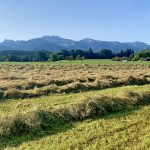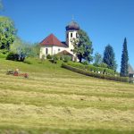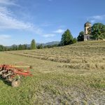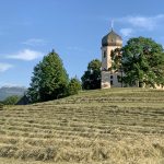 Einladend schön war das Sommerwetter in diesen Tagen für die Einbringung der heurigen Heuernte. Nach getaner Tages-Feldarbeit zeigten sich Felder und Landschaft –wie hier mit der Pfarrkirche „Christkönig“ von Wildenwart und mit der Kampenwand- in friedlicher Ruhe und froher Erwartung auf den folgenden Erntetag. Doch in der Nacht bereits einsetzender Regen machte die Pläne zunichte und die Heu-Heimfahrt muss noch warten.
