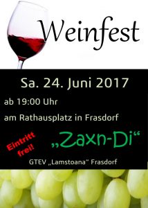 Zwischendurch treten die Kinder- und Jugendgruppe sowie die Aktiven des Trachtenvereins auf. Auch die Frasdorfer Goaslschnalzer zeigen ihr Können. Außer Wein und Bier, gibt es zu späterer Stunde natürlich wieder die Bar der Aktiven. Dort kann der Abend mit dem ein oder anderen Bargetränk ausklingen. Der Trachtenverein freut sich auf Euer Kommen und ein gemütliches Weinfest.