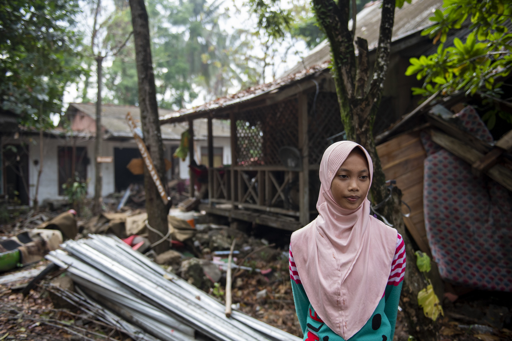 Java, Banten, im Dorf Sumber Jaya: Das Haus der 14-jährigen Sela wurde zerstört. Die Caritas-Partnerorganisation KUN unterstützt sie nun. In der Nacht zum 23. Dezember 2018 wurde Indonesien erneut von einem schweren Tsunami getroffen. Die Flutwelle traf die Inseln Sumatra und Java völlig unerwartet. Lokale Teams der Caritas sind mit Unterstützung von Caritas international im Einsatz, um Hilfe zu leisten. Im September 2018 wurde bereits die Insel Sulawesi von einem Erdbeben und einem Tsunami getroffen. mehr Informationen: https://www.caritas-international.de/hilfeweltweit/asien/indonesien/nothilfe-und-wiederaufbau-nach-tsunami Foto: Bente Stachowske Copyright Caritas international, Abdruck honorarfrei, Belegexemplar erbeten, Tel: 0761/ 200-288