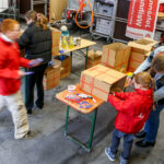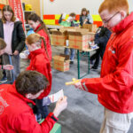 Am 6.12. ging es nach einer kurzen Begrüßungsrunde für 13 Kinder und Jugendliche jedoch in die Fahrzeughalle. Zwischen den Einsatzfahrzeugen packten sie 15 Päckchen für den Johanniter-Weihnachtstrucker mit Lebensmitteln und Hygieneartikeln, die zuvor von den Jugendgruppenleitungen besorgt wurden.
