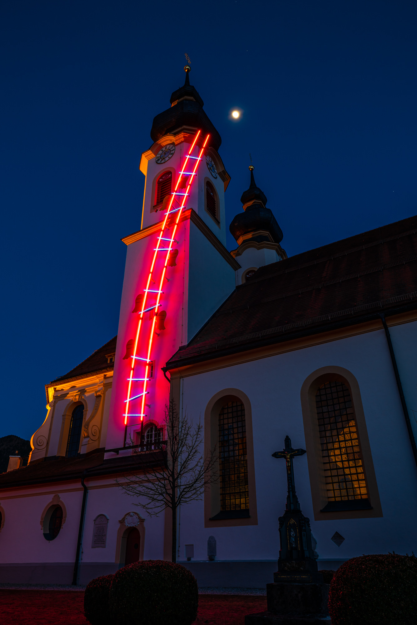 Kunstprojekt “Himmelsleiter” von Erwin Wiegerling am Kirchturm