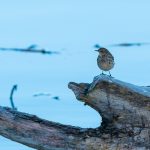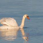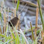 Ein kalter Morgen mit etwas Bodenfrost, die ersten Sonnenstrahlen treffen auf den See und ein Höckerschwan genoß das wärmende Licht. Im noch in frostigen Schatten gehüllten Ufer hüpften ein Bergpieper und ein Zaunkönig vor dem Turm herum. Eine Mittelmeermöwe patroullierte am Ufer entlang und ließ sich dann auf einem halb versunkenem Stamm nieder. Mittlerweile erreichten die Sonnenstrahlen auch ein aufgeplustertes Rotkelchen im Gebüsch. Insgesamt war es sehr ruhig und nur wenige Vögel zeigten sich vor dem Turm. Außer einem Kormoran flogen auch noch große Schwärme von Graugänsen vorbei und zu guter Letzt gab sich noch eine Kornweihe die Ehre.