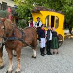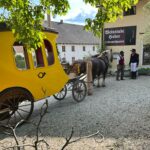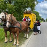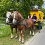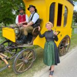 Fotos: Sattlberger – Eindrücke vom dritten Streckenabschnitt der Historischen Postkutschenfahrt von Regensburg zum Samerberg mit Halt beim Huberwirt in Hebrontshausen – u.a. mit den Kutschern Hubert Kirchmair (li.) und Didi Kraus sowie mit den Begleitern Marianne Stadler und Fritz Kern.